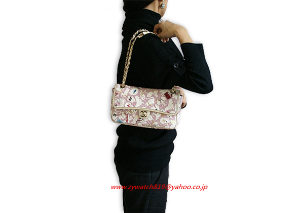 シャネルバッグ スーパーコピーモチーフ付きコットンチェーンバッグ CHEL-023素材:コットン×レザー色:薄いピンク×白サイズ:W25cm×H15cm×D5cm付属品:ギャランティカード