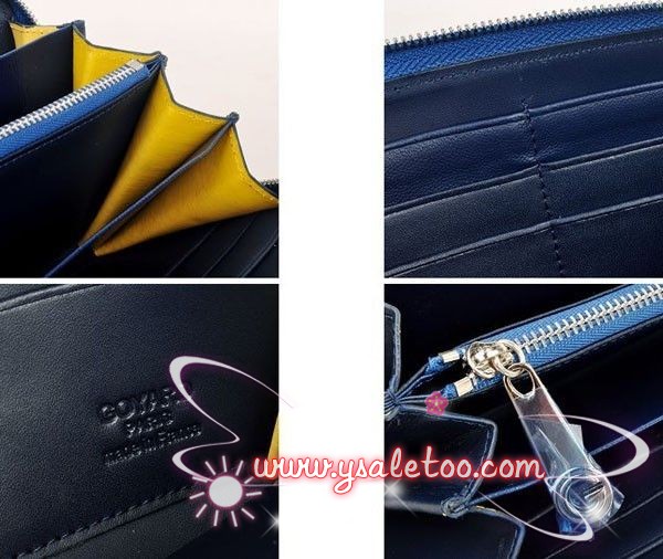 ゴヤールコピー 長財布 ラウンドジップ ブルー GY027【サイズ】タテ10.5cm ヨコ20cm マチ幅2.5cm 【素材】表地:コーティング生地 裏打ち:牛革パーツ使用【仕様】札入れ×1 小銭入れ×1(ファスナー式) カード入れ×8 ポケット×5ファスナーでぐるっと一周囲まれた長財布は、女性的で品がある感じです。