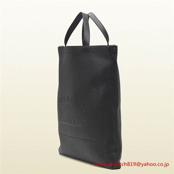 グッチコピーバッグトトートバッグ295262 AVL0N 1000ブラックレザーハードウェア:パラジウムレザーハンドル(ハンドルの高さ:12cm)フロントにグッチヴィンテージトレードマークをエンボス加工ダブルハンドルオープントップサイズ:ミディアム W43cm x H46cm