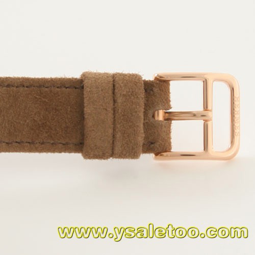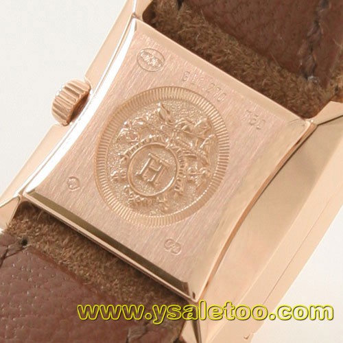 ピンクゴールドのケースをスライドさせると清楚なホワイトシェルの文字盤が顔を出します。シンプルでカジュアルなデザイン。 ふんわり優しい雰囲気を漂わせるスエードのレザーベルト。6段階の腕周り調節が可能でバックルにはエルメスのロゴが刻印。 裏蓋にはエルメスのロゴマークと固有のシリアルナンバーが刻印されています。
