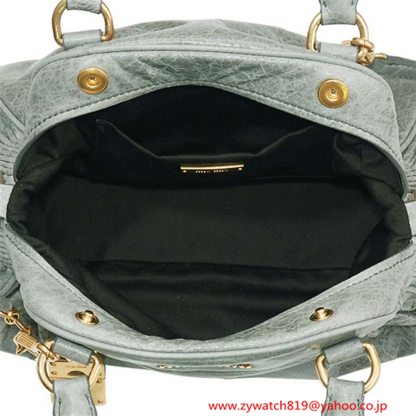 ミュウミュウコピー 南京錠チャーム付きハンドバッグ RT0439品番 :RT0439 NAPPA CHARM PERVINCA素材 :ラムスキンサイズ:縦18×横29×マチ12cm 持ち手:30cmカラー:グレイッシュブルー仕様 :開閉:マグネット 内側:オープンポケット×1付属 :専用袋付き