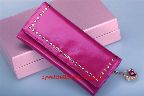 ミュウミュウ財布ワックスレプリカブランドのレザーリベット金属クラムシェルモデルの桃のハートダイヤモンドローズミュウミュウ007