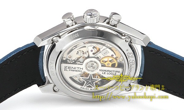 ゼニスZENITHコピー エルプリメロ 36000VPH 03.2150.400/51.C705タイプ 新品メンズ 型番 03.2150.400/51.C705 機械 自動巻き 材質名 ステンレス 文字盤色 ブルー/シルバー 外装特徴 シースルーバック ケースサイズ 38.0mm 機能 クロノグラフデイト表示 付属品 内・外箱ギャランティー